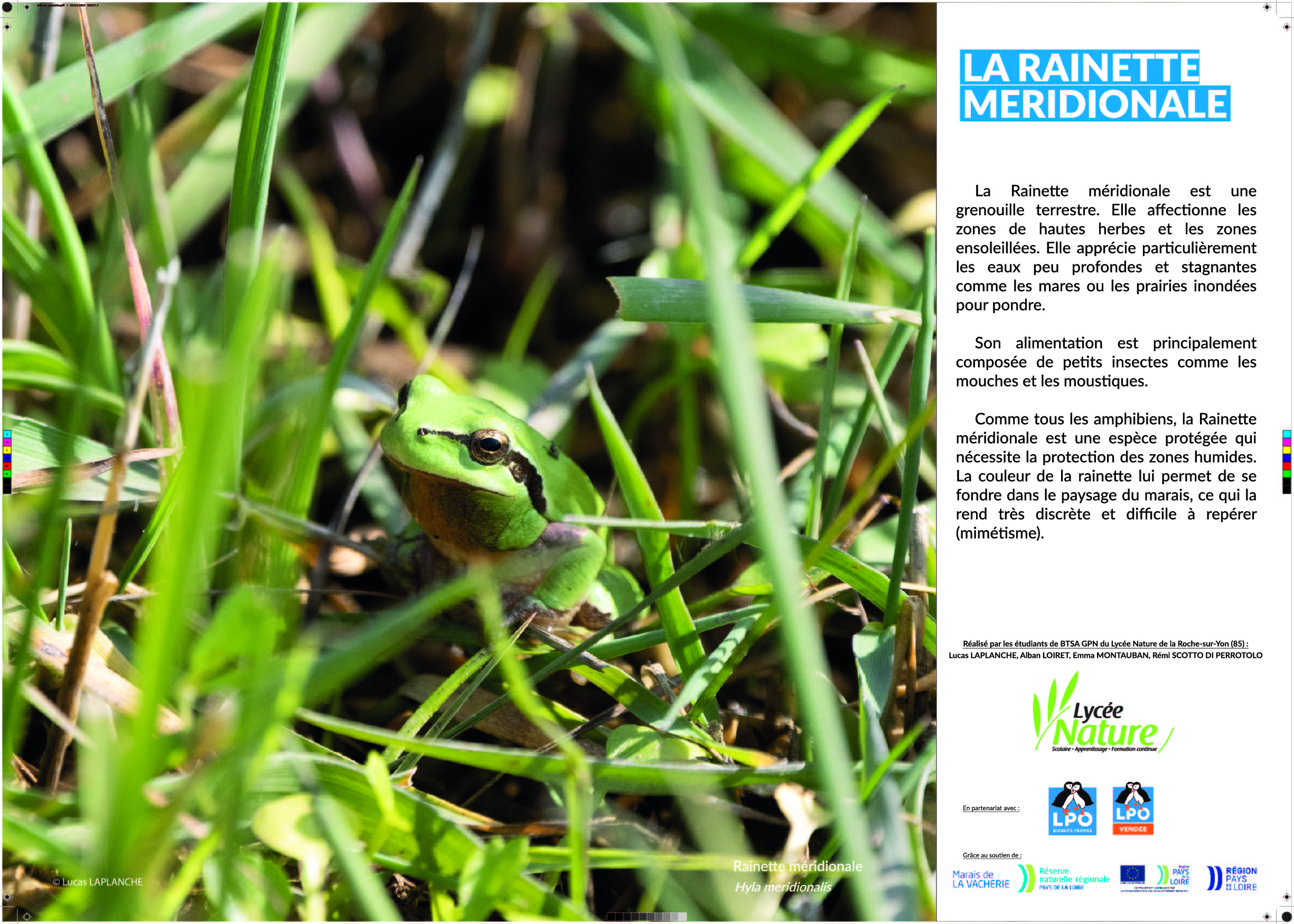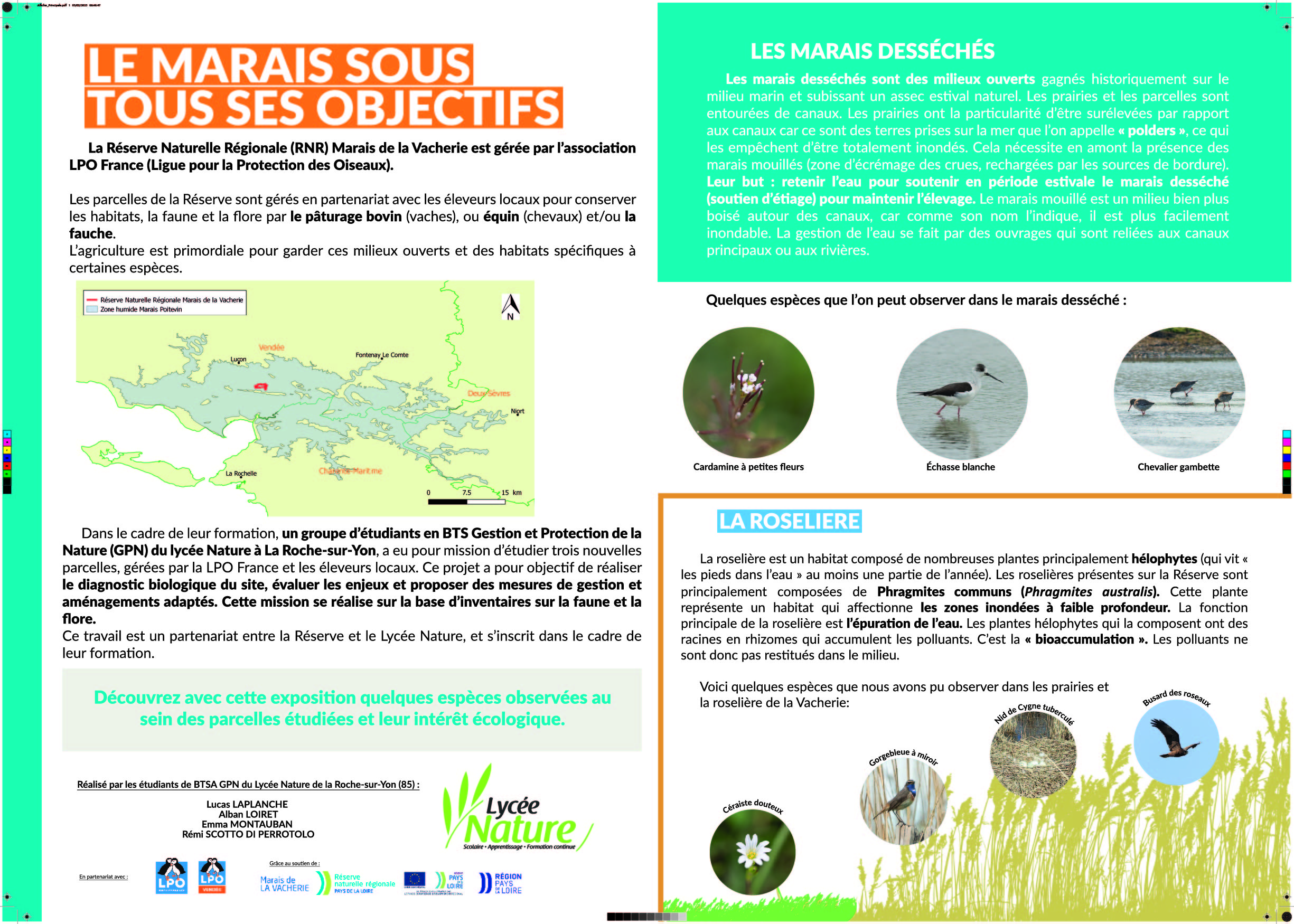 La commande du projet a été émise par le conservateur de la Réserve Naturelle Régionale du Marais de la Vacherie, réserve gérée par la LPO France sur la commune de Champagné-les-Marais.
